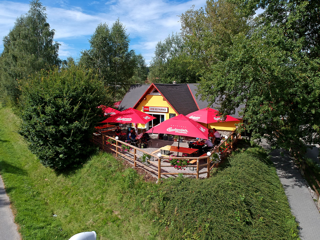 Vedle restaurace je dřevěná mašinka s vagónky, kterou ocení naši nejmenší. Restaurace nabízí jak posezení vevnitř, tak venku. A co zde najdete? Dobré jídlo a pití, ochotný personál a hlavně spoustu plyšových medvídků a velký dětský koutek..
