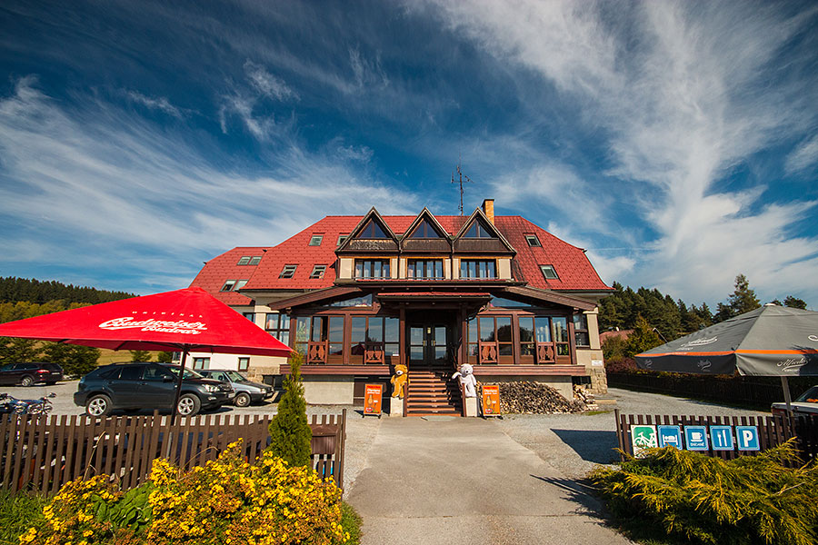 Vydáte-li se od apartmánu pro cyklostezce směrem Černá v Pošumaví, po cca 800 m narazíte na samostatně stojící objekt s dominantou 2 dřevěných méďů a shodou okolností se jedná o Restauraci U Méďů.